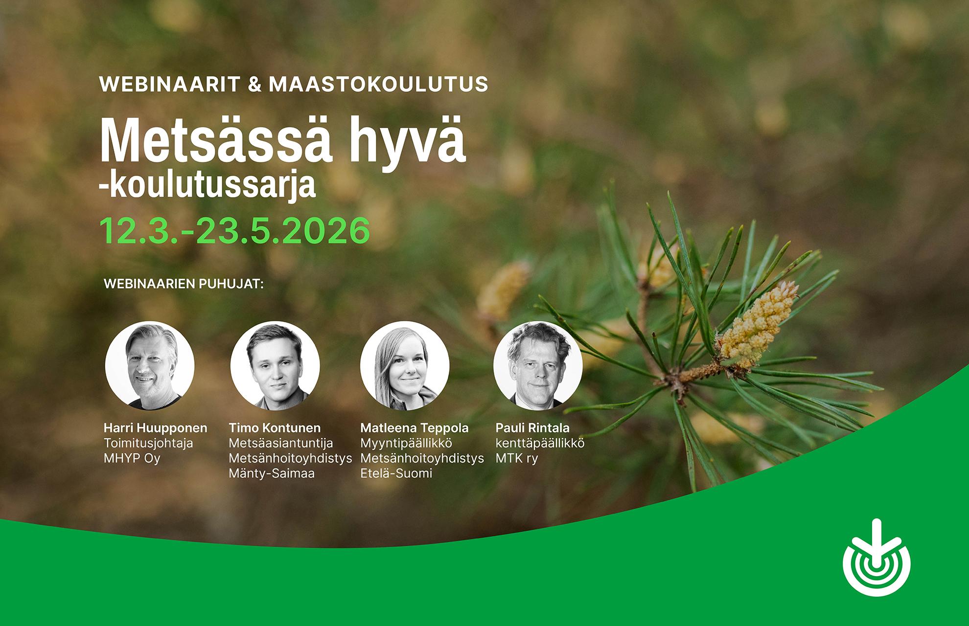 Koulutussarja alkaa kolmella webinaarilla, joissa opit metsänomistamisen, metsänhoidon ja puukaupan perusteet helposti ja käytännönläheisesti.